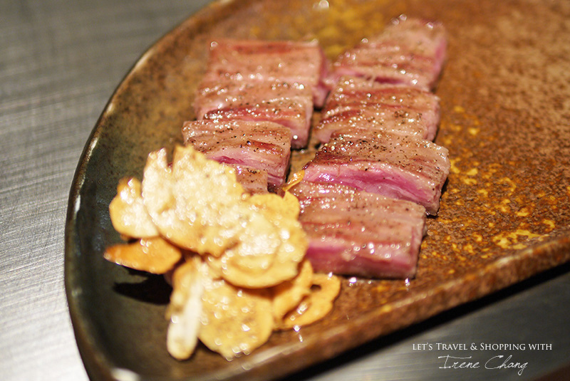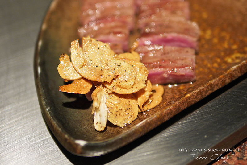 蒜片煎得香脆,自己對於蒜片沒有好惡,也無法多著墨,總的來說,A5能登牛的肉質可說是上乘之作,師傅的重口料理手法或許會偏中某些族群,但就我自己看來兩片牛排生熟度不一,有些可惜,不少人推崇能登牛為入口即化的美味,只是在我心中和牛之王「米澤牛」依然屹立不搖站穩一席之地,這種不公平的比較,我想,或許會蔓蔓日茂一輩子。
