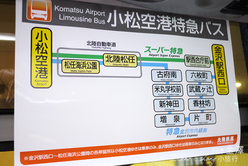 從機場到金澤車站的巴士分為兩種,端看你所居住的地方,去選擇要搭乘的車種: