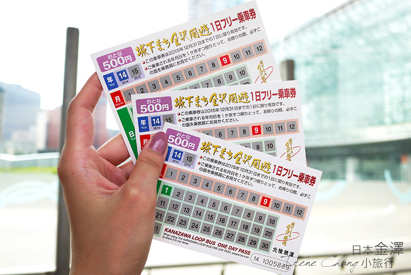 想要輕鬆悠游金澤市內景點,可選擇北陸鉄道發售的金澤周遊巴士一日優惠票券:大人500、小孩250。