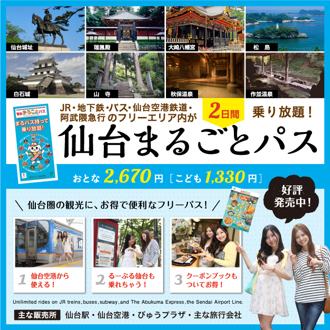 那買「仙台まるごとパス」二日周遊券就對啦!