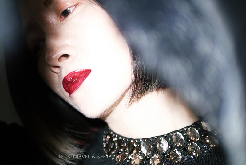 以月蝕概念誕生的這組照片,呈現在不同光度下的各種唇色變化,在最光亮的時刻,看似水潤的大紅色,實際上則是最貼近這張,是一抹讓你瞬間氣勢上漲的暗黑霧面血紅色。